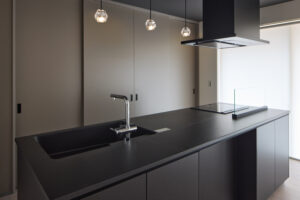 オリジナル造作家具で収納も十分に確保できました。