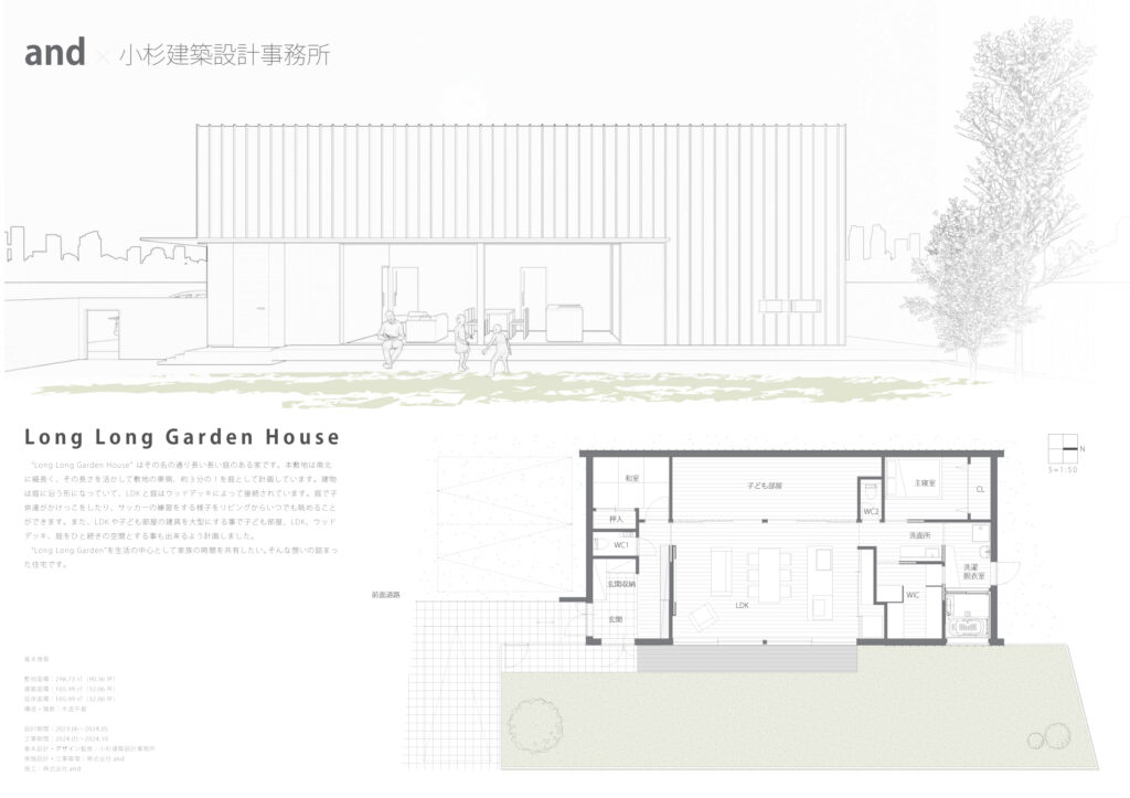 “Long Long Garden House” はその名の通り長い長い庭のある家です。本敷地は南北